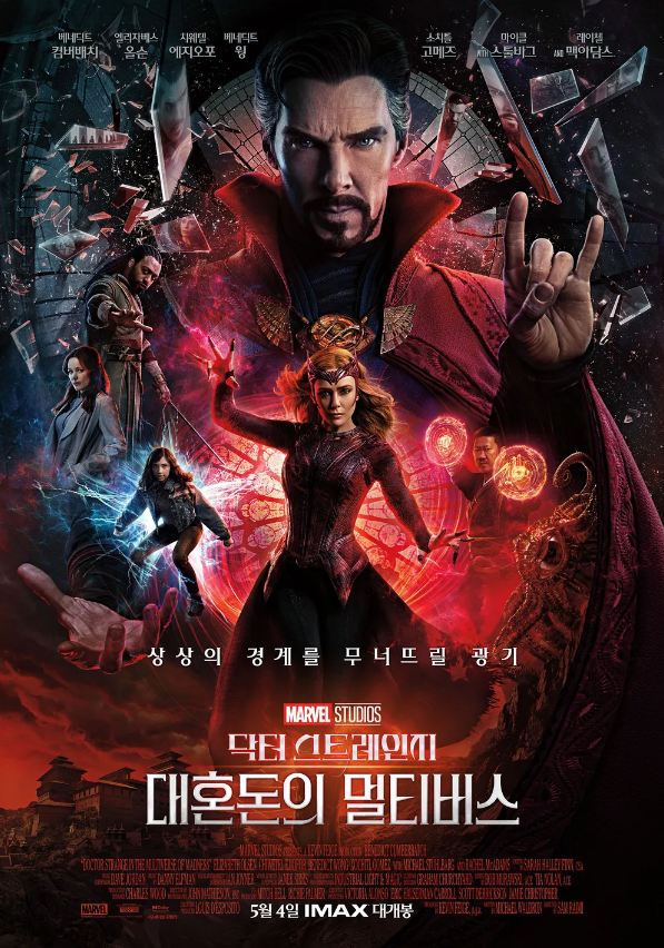 예매 오픈 첫날인 4월 21일부터 사전 예매량 10만장을 돌파했고, 예매 4일차에는 20만장을 돌파하며 예매율 70%를 돌파했다. 발매를 일주일 앞두고 선주문량 30만 장, 선주문량 40만 장을 한 주 만에 돌파했다. 발매 4일 전 선주문량은 50만 장을 돌파했다. 출시를 3일 앞두고 선주문량 60만 장을 돌파했다. 개봉 이틀 전 선주문량은 70만 장을 돌파했다. 개봉 이틀 전 저녁에는 '스파이더맨: 노 웨이 홈'이 선주문량 76만 장을 돌파하며 역대 개봉 영화 중 가장 높은 선예매량 타이틀을 거머쥐었다. 전염병. 이는 같은 해 출시된 Pirates: The Goblin Flag, The Batman, Mysterious Animals 및 Dumbledore's Secrets, 역대 1위 팬데믹 박스오피스 히트작인 Spider-Man: No Way Home보다 훨씬 빠르다. 그리고 개봉 하루 전 사전 예매량이 100만을 돌파했다. 이 기록은 Avatar: Water Road가 110만 명의 예약을 유치하면서 깨졌다. 개봉 첫날 무려 71만 명의 관객을 동원했다. 그리고 개봉 이틀째인 어린이날에는 106만 명의 관객을 동원해 캡틴 아메리카: 시빌 워의 88만 명을 돌파했고, 누적 관객 수 178만 명으로 2022년 한국 흥행 1위로 등극했다. 정부의 코로나19 규제 완화와 어린이날 특집이 결합해 이런 성과를 기록하고 있는 듯하다. 개봉 3일 만에 200만 관객을 돌파했다. 인스타그램 아이콘 마블 코리아 개봉 4일 만에 300만 관객을 돌파했다. 심야 시청자 수는 근소한 차이로 넘지 못했지만, 심야 시청자 수로 넘어갔다. 개봉 9일 만에 400만 관객을 돌파했다. 유튜브 아이콘(엘리자베스 올슨 감사 영상) 공개 직후 속도는 노웨이홈보다 앞섰지만, 어린이날 특집과 팬데믹 이전인 5월 본토에서 개봉한 영화들은 지난 문화의 날 개봉을 기점으로 삼았다. 한국의 수요일. 어린이날 특집에 어울리지 않는다. 크라임시티2 개봉으로 극장과 관객 수는 불가피하다.길가메쉬에게 도둑맞은 닥스 개봉일인 14일 마블 코리아 공식 유튜브에는 샘 레이미의 500만 관객 돌파 감사 영상이 올라왔다. 2주째부터 조금씩 드랍률을 보이고 있다가 15일 범죄도시2가 출시되면서 2위로 떨어졌다. 개봉 19일 만에 누적 관객 수 547만 명을 기록하며 닥터 스트레인지 1의 관객 수를 넘어섰다. 출시 21일 만에 550만 명을 돌파했다. 개봉 26일 만에 570만 명을 돌파했다. 개봉 28일 만에 580만을 돌파했다. Jurassic World: Dominion의 출시로 2위에서 5위로 올라섰고 새로 개봉된 다른 영화들은 차트 아래로 밀려났습니다. 일일 관객은 계속해서 10,000명 미만입니다. 새롭게 공개된 마녀 2부. 또 다른 하나, 버즈 라이트이어가 상영되며 하차한다. 한국은 호불호가 엇갈렸지만 최종 수입이 4800만 달러를 넘어 북미를 제외한 영국 다음으로 박스오피스 2위 국가가 됐다. 개봉 말 기준 588만 장을 돌파했다.