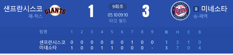 샌프란시스코 vs 미네소타 트윈스 5월11일 경기 하이라이트 다시보기