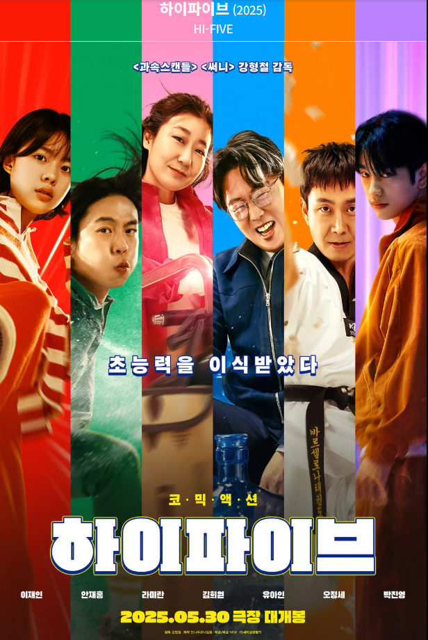 영화 **『하이파이브』**는 2025년 5월 30일 개봉한 한국형 코믹 액션 판타지 영화로, 장기 이식을 통해 초능력을 얻게 된 평범한 다섯 명의 이야기를 다룹니다. 강형철 감독의 연출 아래, 이재인, 안재홍, 라미란, 김희원, 유아인, 오정세, 박진영 등이 출연하여 개성 넘치는 캐릭터를 선보입니다.