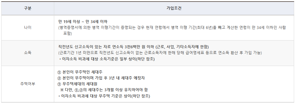 ※ 다만, 가입자 본인이 무주택이며 가입 후 3년 내 세대주 예정자의 경우, 저축 해지 전까지 발급일로부터 3개월 이내의 주민등록 등,초본 등의 서류를 저축취급기관에 제출해야 함.