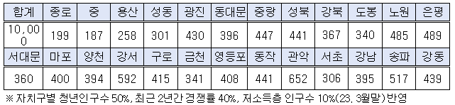 - 약정 포기자 등 발생으로 자치구별 모집 정원 미달 시 부족 인원만큼 예비대상자 중에서 고득점순으로 추가 선발