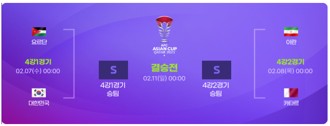 *아시안컵 4강 준결승 토너먼트 대진표를 확인해 보겠습니다.