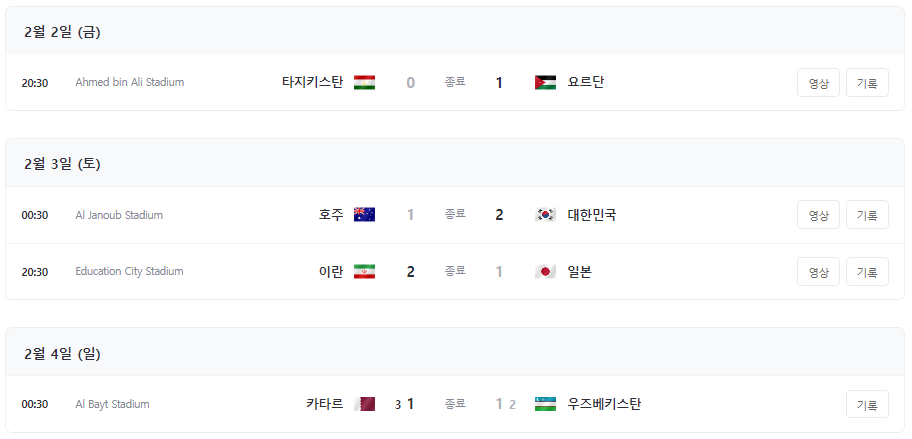3. 2월 3일 (토) 오후 8시 30분 : 이란 vs 일본 → 2:1 이란 승리