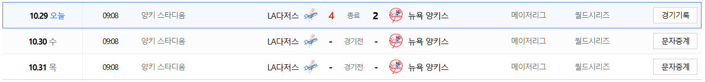 ▣ 2024 메이저리그 MLB 월드시리즈 경기 현황