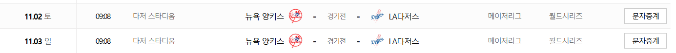 메이저리그 MLB 월드시리즈 5차전 뉴욕 양키스 vs LA 다저스 경기 실시간 바로보기 ☜ 클릭